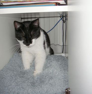 Naja, so gingen die ersten Wochen in’s Land und ich war ganz zufrieden hinter bzw. in meinem Schreibtisch. Zumal da noch so ein Mann im Haus rumlief, der mir nicht ganz geheuer war. Der hat so eine tiefe Stimme und poltert die Treppen hoch und runter.