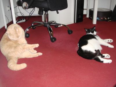 Die Blonde, die mich am Flughafen abgeholt hatte (mittlerweile weiß ich ja, dass es mein Frauchen ist), hat sich in der Zeit ganz schön in’s Zeug gelegt. Sie hat sich immer zu mir gesetzt und auf mich eingeredet, wie süß und lieb ich doch sei (als ob ich das nicht wüsste!) und dass mir hier keiner was tun würde (das kann ja jeder sagen! Vorsicht ist die Mutter der Porzellankiste oder wie das heißt). Ab und zu kam auch ein dicker blonder Kater nach mir gucken.