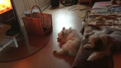Und wir haben es uns sehr oft drinnen vor den Kaminofen gemütlich gemacht! Das ist mein neuer Lieblingsplatz ! Da kann ich stundenlang liegen ohne mich zu bewegen!