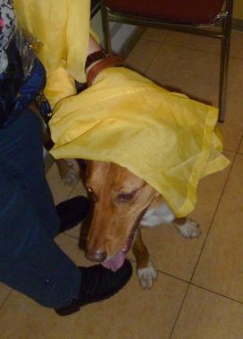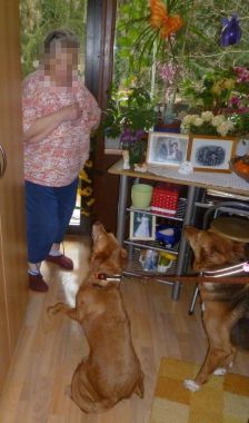 Hier freuen wir uns über die Karottenstückchen, die wir zur Belohnung bekommen.