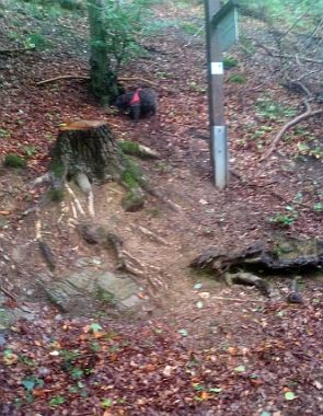 Dann auf ganz schmalen Wegen (aber dennoch offizieller Wanderweg) Wie gut das Frauchen immer weiß wo es lang geht.