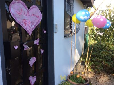 So hatte eine Nachbarin den Eingang zu meinem Empfang geschmückt. Super, oder?
