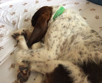 Die lange Autofahrt habe ich an mein Frauchen gekuschelt verschlafen.